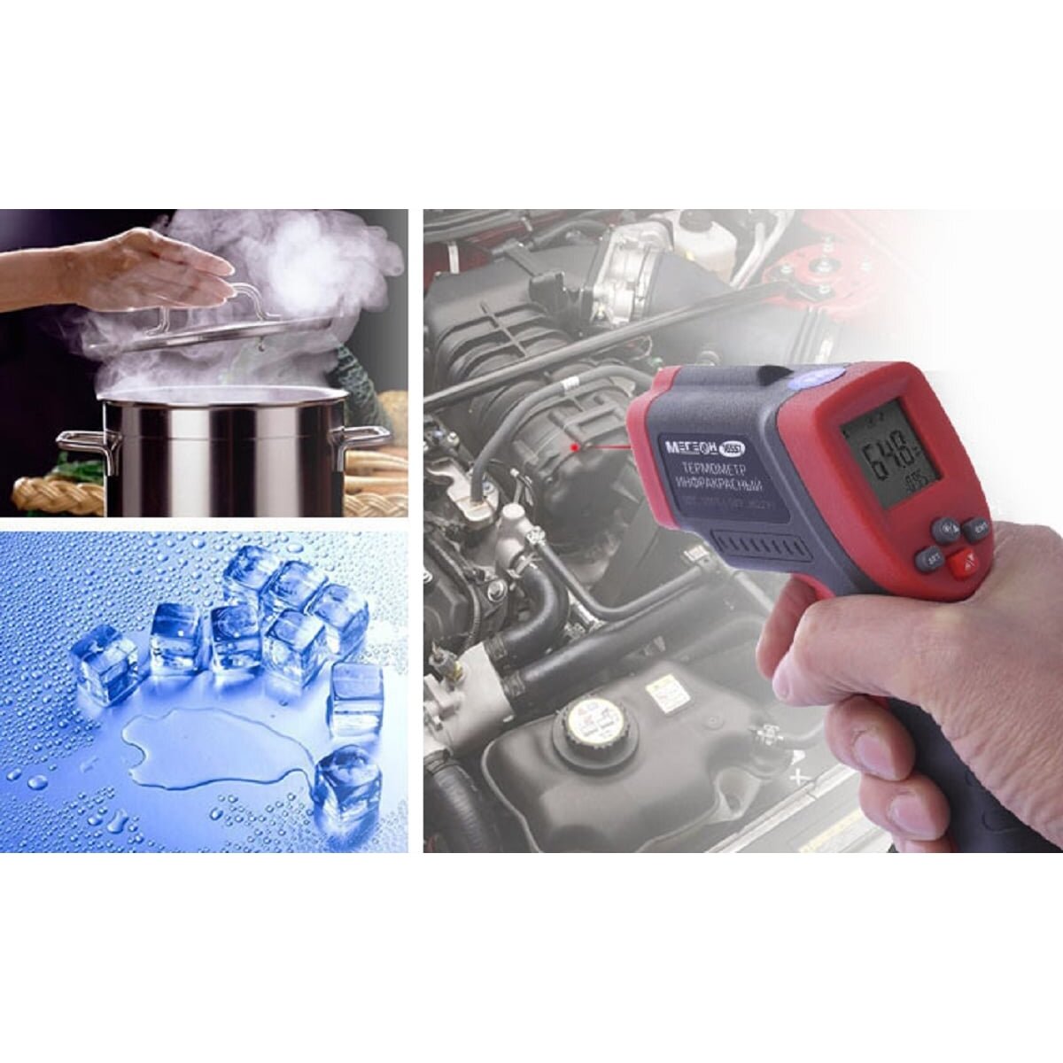 Пирометр используется для измерения температуры. Замер осуществляется без контакта с объектами. Для быстрого и точного наведения на цель предусмотрен лазерный целеуказатель. Оптическое разрешение прибора 12:1 позволяет работать с безопасного для пользователя расстояния.