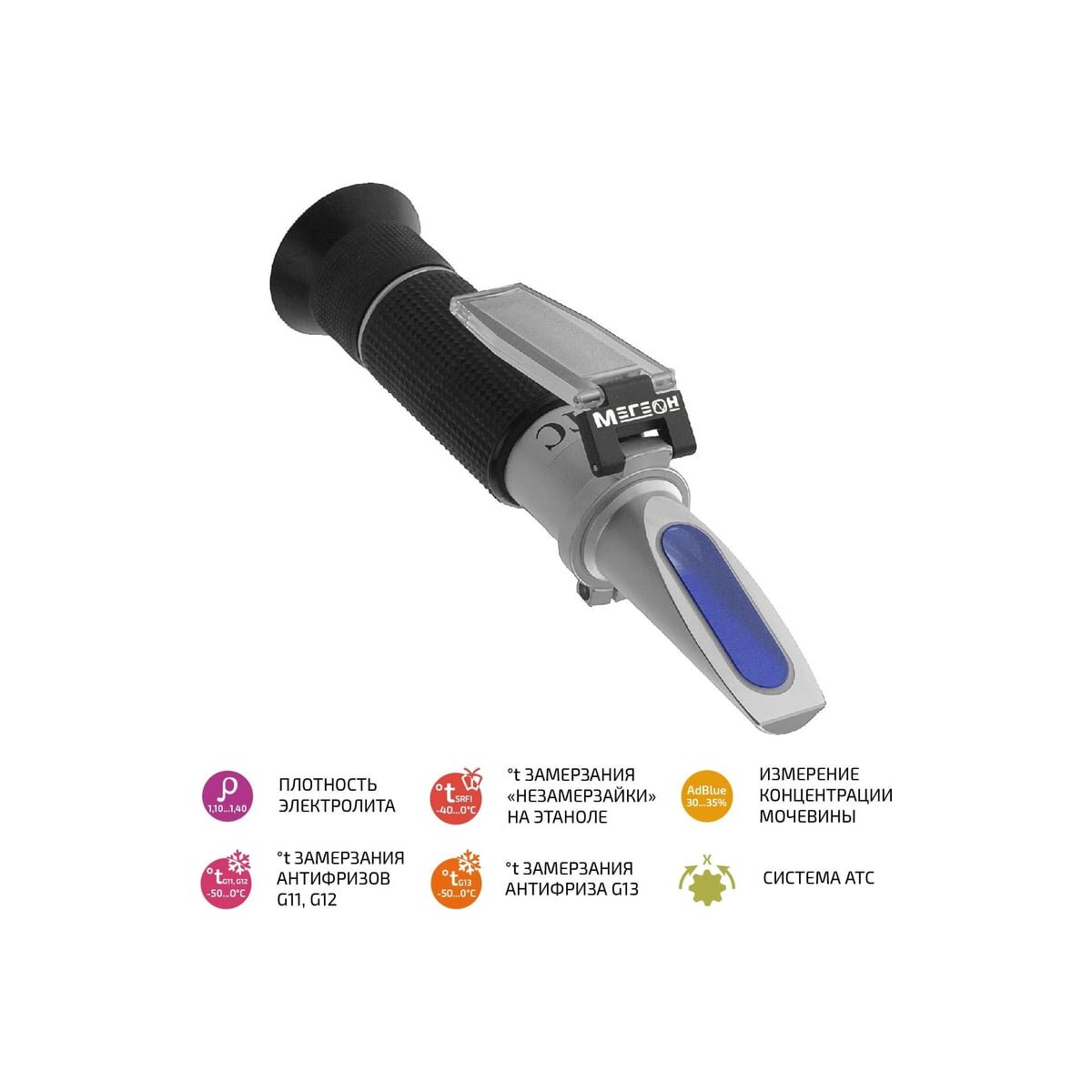 Рефрактометр для автомобилистов МЕГЕОН 72013 к0000018699 помогает определить показатель преломления света в исследуемой среде. Используется для измерения температуры замерзания антифриза, теплоносителя, хладоносителя, омывающей жидкости, измерения плотности электролита и концентрации мочевины (AdBlue).