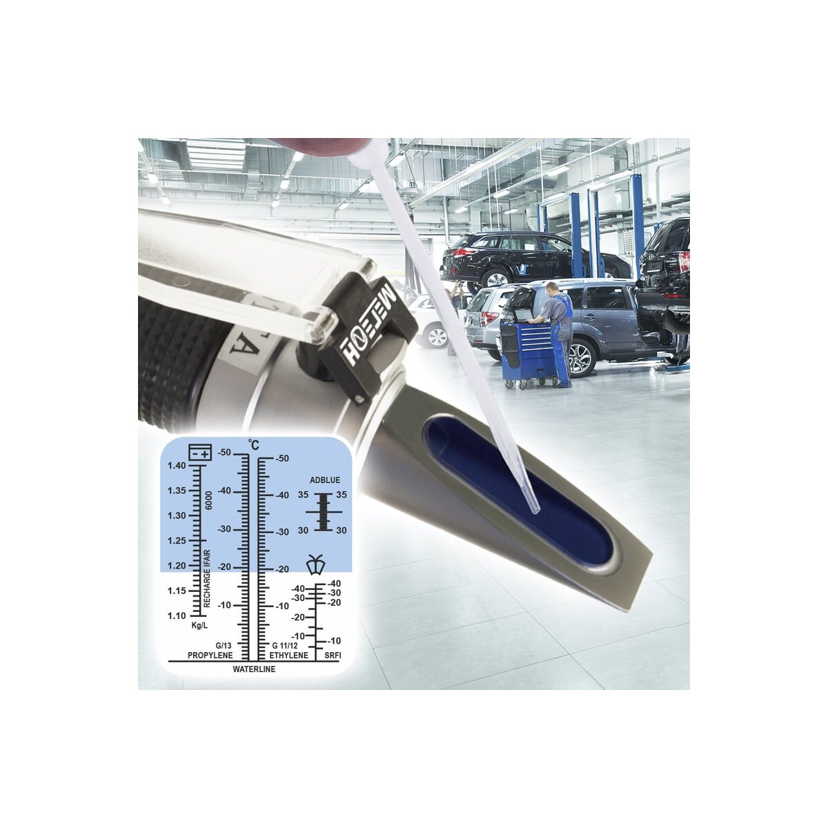 антифриз G11/G12/G13: -50...0°C / плотность электролита: 1.10-1.40 / концентрация AdBlue: 30-35% / температура замерзания омывающей жидкости SRFI: 0...-40°C