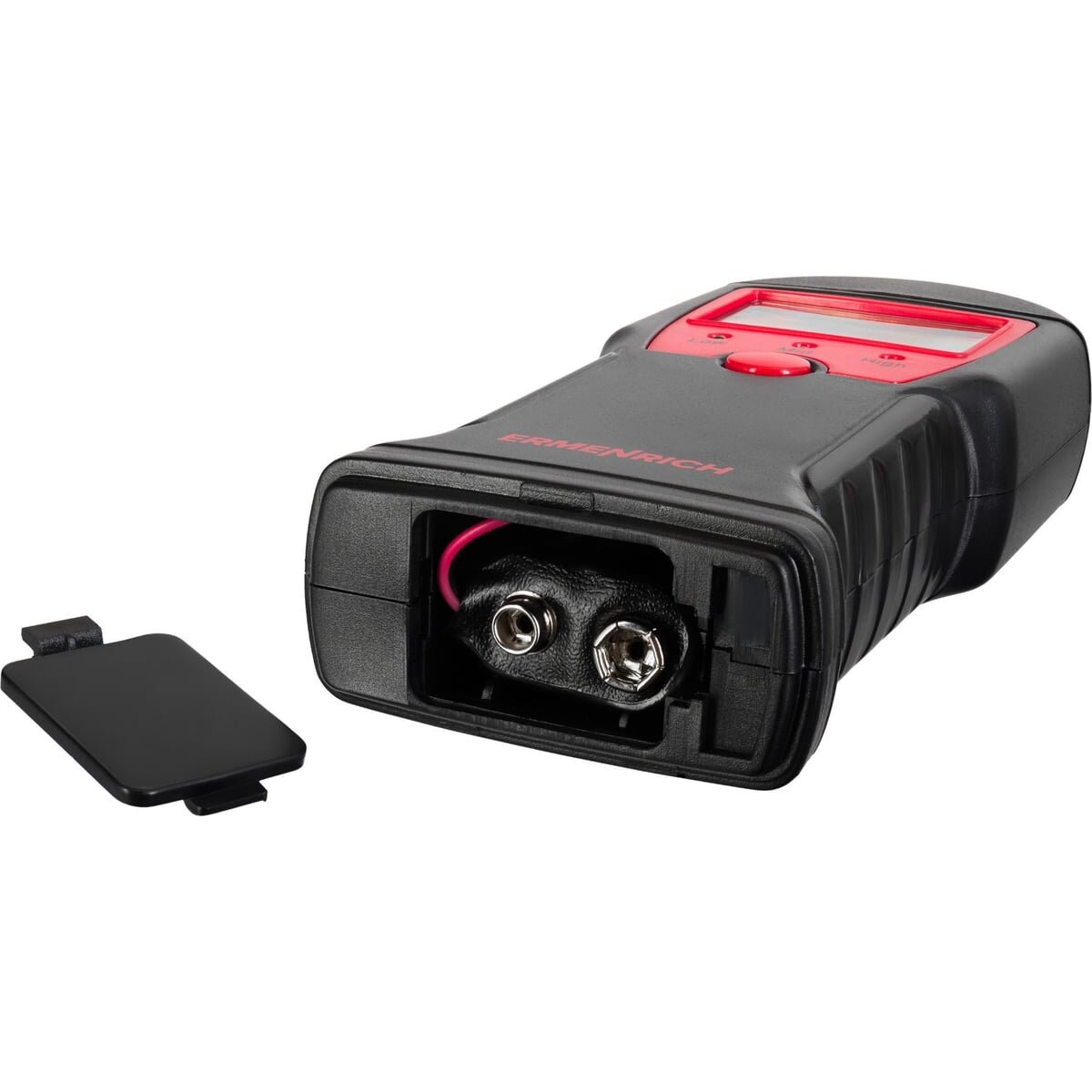 Датчик влажности (влагомер) Ermenrich Wett MW10 – портативный измерительный инструмент, который определяет уровень влажности разных материалов: в первую очередь сделанных из древесины, но также и предназначенных для строительных работ (растворов, смесей и проч.). Он работает по контактной технологии, т. е. имеет пару игольчатых сенсоров, которые и проводят замеры. Также прибор может определять температуру.