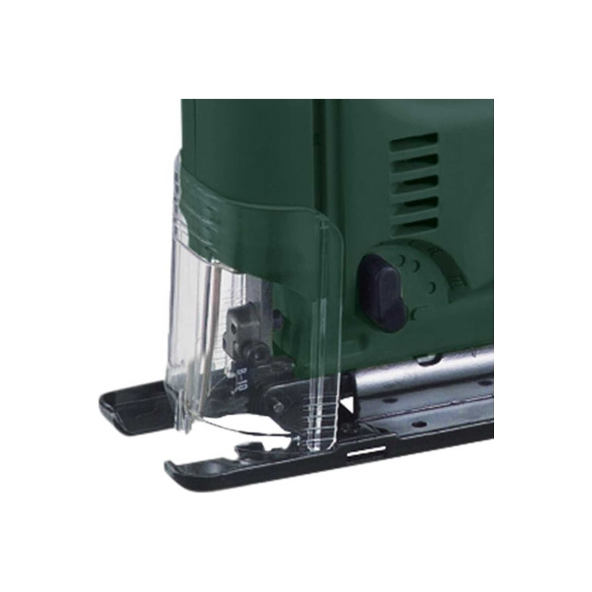 Электролобзик имеет эргономичный корпус с мягкими накладками для удобного и надежного удержания инструмента в руке. В комплекте поставляется адаптер для подключения к пылесосу, что обеспечивает поддержание чистоты на рабочем месте.