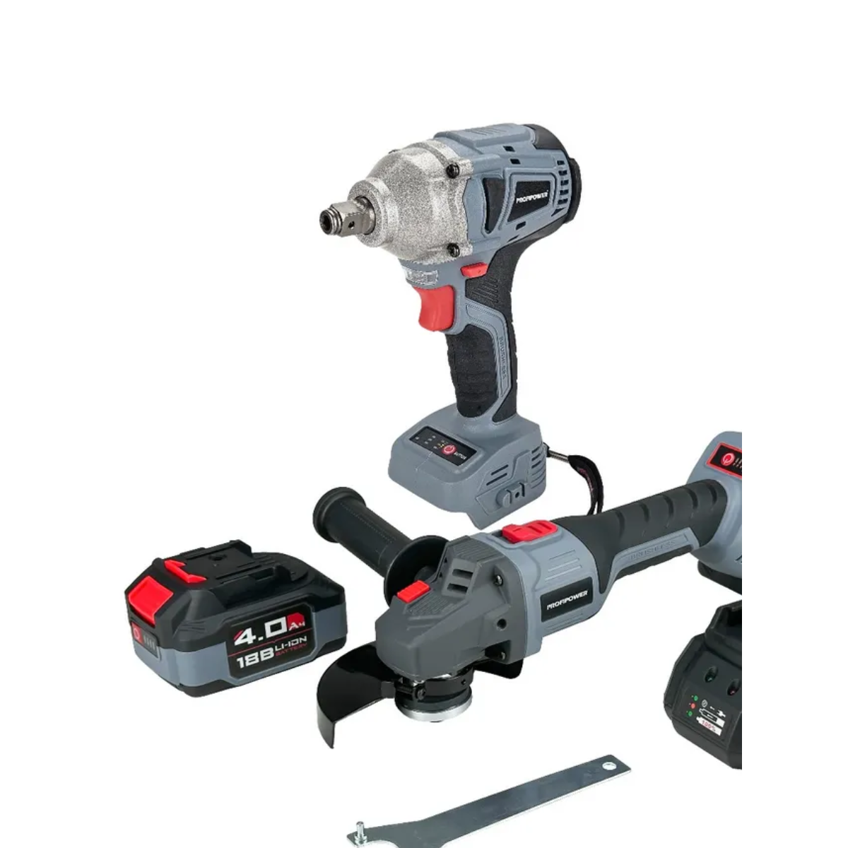 Гайковерт, Зарядное устройство, Кейс, Угловая шлифмашина