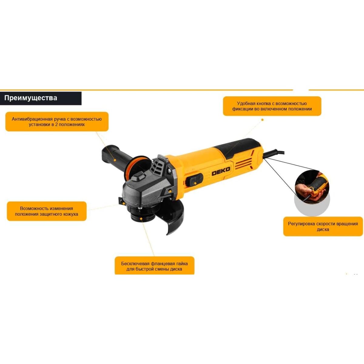 -Возможность изменения положения защитного кожуха