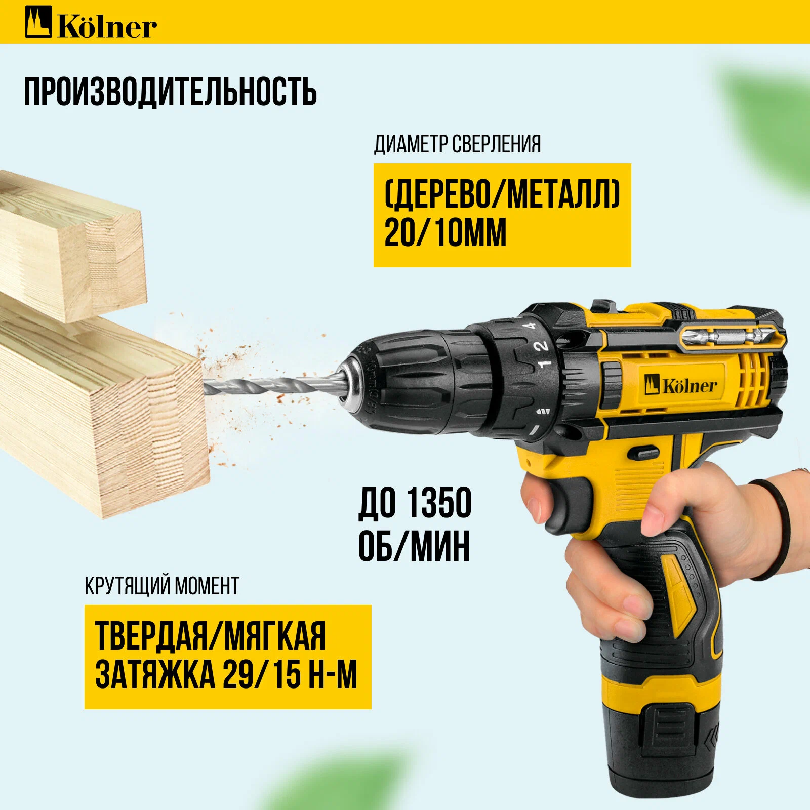 Макс. диаметр сверления (дерево)