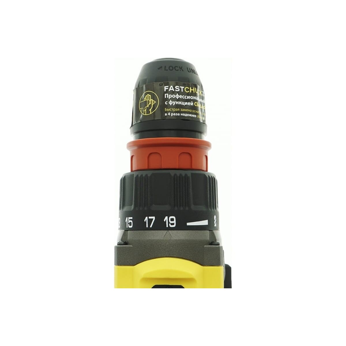 -Блокировка шпинделя и широкая муфта быстрозажимного патрона позволяют менять оснастку одной рукой и закреплять её с наилучшей фиксацией