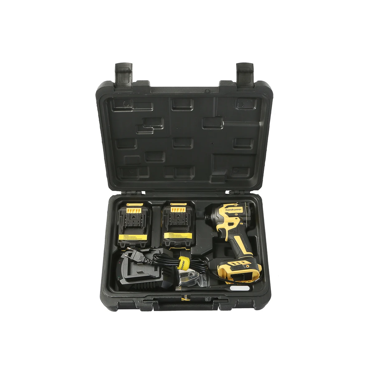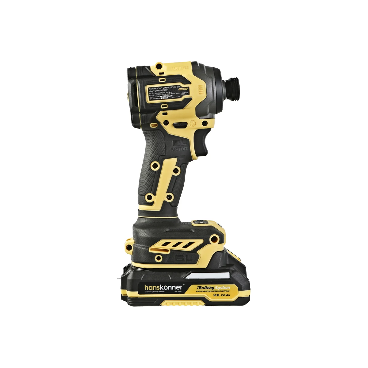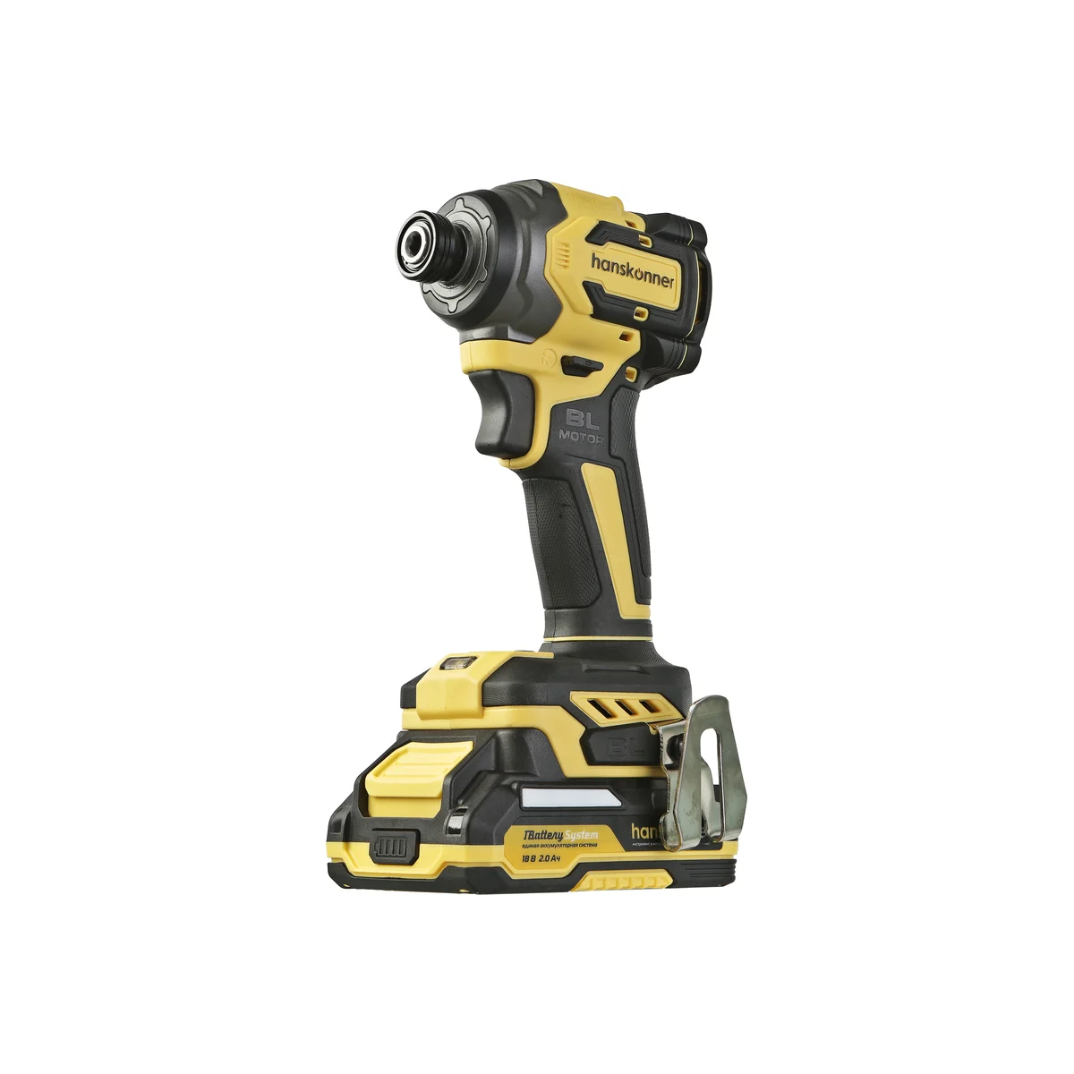 Hanskonner HCD20280BLWC–аккумуляторный 18 В, ударный винтоверт с типом гнезда под шестигранник 1/4″– является частью системы 1BatterySystem, обеспечивающей совместимость одного и того же аккумулятора с целым рядом наименований инструмента. Модель обладает максимально сбалансированной компоновкой: небольшие размеры корпуса и рукояти позволяют эффективное использование в условиях с затрудненным доступом, а нейтральный центр тяжести, и обилие прорезиненных противоскользящих поверхностей способствуют надежному хвату, и лучшему контролю. Винтоверт оснащен 18 В бесщеточным двигателем, характеризующимся на 30% лучшей производительностью в сравнении с коллекторными аналогами.