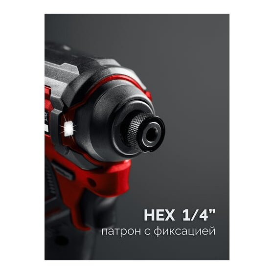 Патрон с внутренним HEX 1/4'' позволяет устанавливать стандартный сменный инструмент без оттягивания втулки