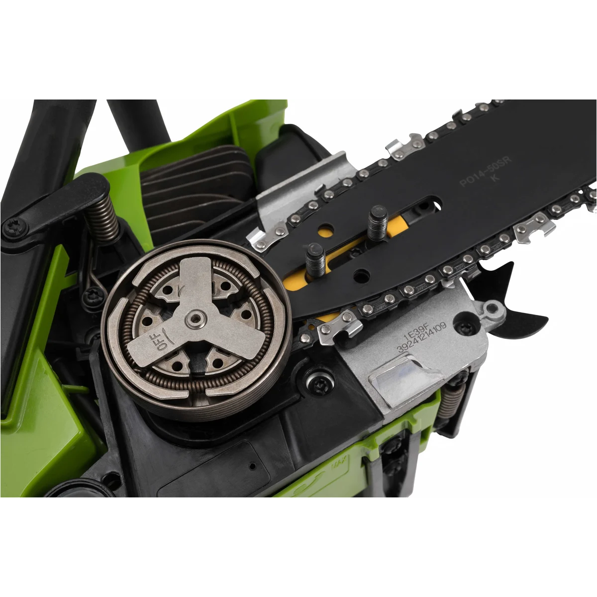 - Автоматическая система смазки цепи обеспечивает равномерную подачу масла для безопасной и эффективной работы.