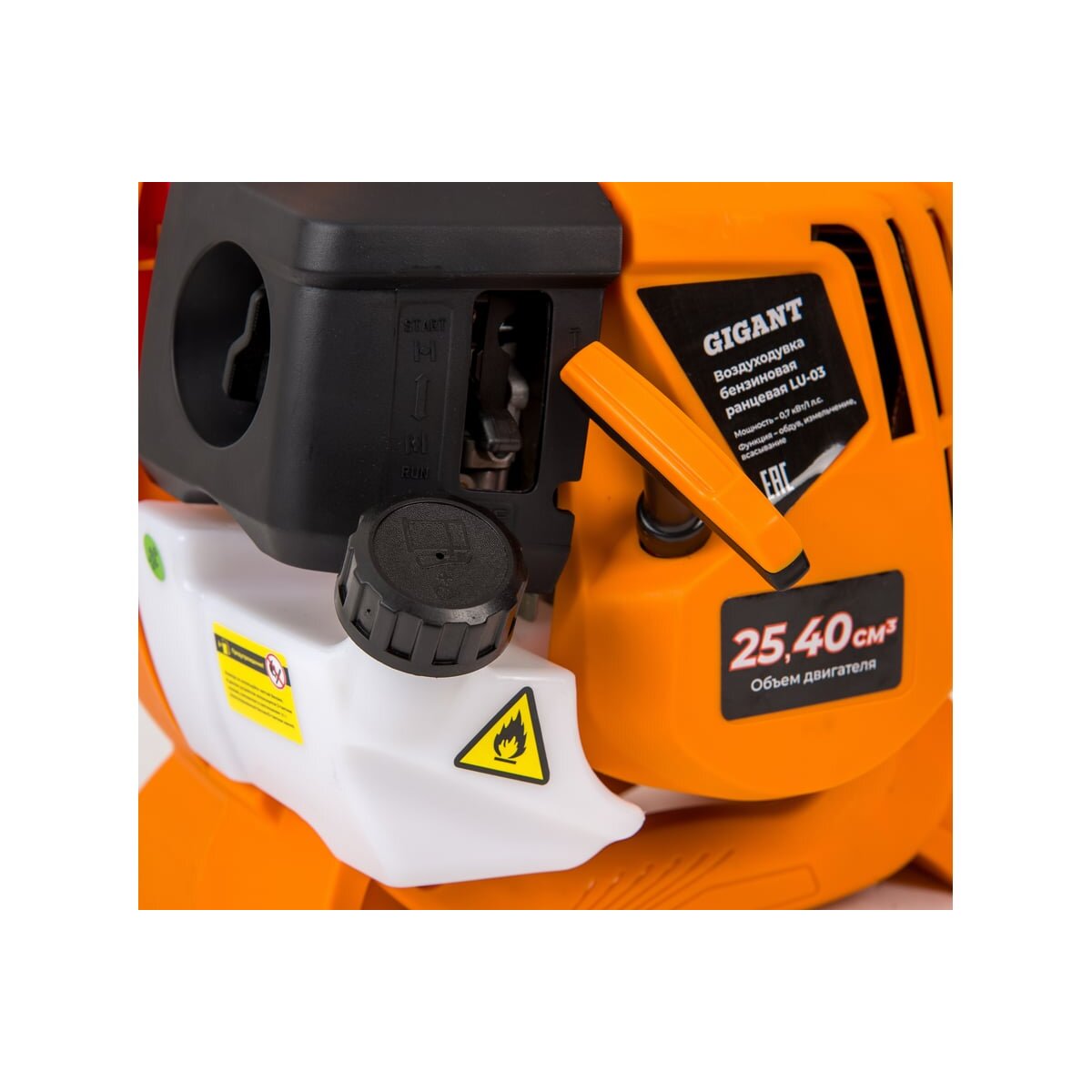 Бензиновая ранцевая воздуходувка Gigant 0,7 кВт, 1 л.с. функция обдув LU-03 применяется для очистки сада или приусадебного участка от мелкого мусора. Инструмент имеет вес и небольшие размеры, поэтому удобен в применении.