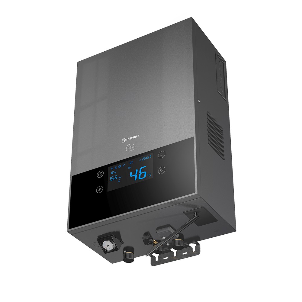 4.Комфортное управление: Электронное управление через панель на фронтальной стороне котла обеспечивает мгновенный доступ ко всем необходимым данным по работе оборудования. Благодаря технологии Wi-Fi Motion, вы можете управлять котлом дистанционно с помощью приложения Thermex Home, настраивая алгоритмы нагрева и температуру.
