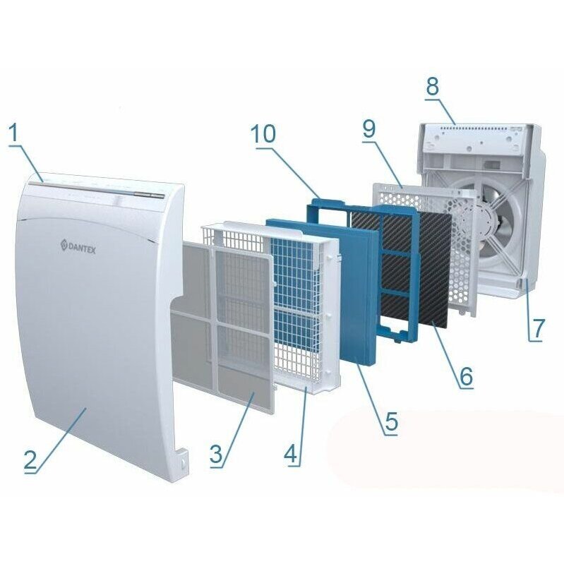 Воздухоочиститель Dantex D-AP300CF 64876464 пропускает воздух в помещении через 5 ступеней очистки.