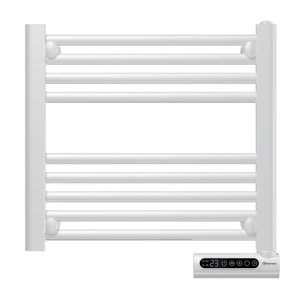 Электрический полотенцесушитель Thermex Menta выполнен в стальном корпусе в виде лесенки, имеет квадратный профиль с круглыми перекладинами. Нагревательным элементом служит сухой кабель – коррозия или протечки исключены. Полотенцесушитель не требует подключения к системе ГВС, что упрощает монтаж. Для оптимального использования энергии пользователь может настроить температурный диапазон и установить программируемый таймер. Это неотъемлемый элемент интерьера, который добавляет изысканности и стиля.