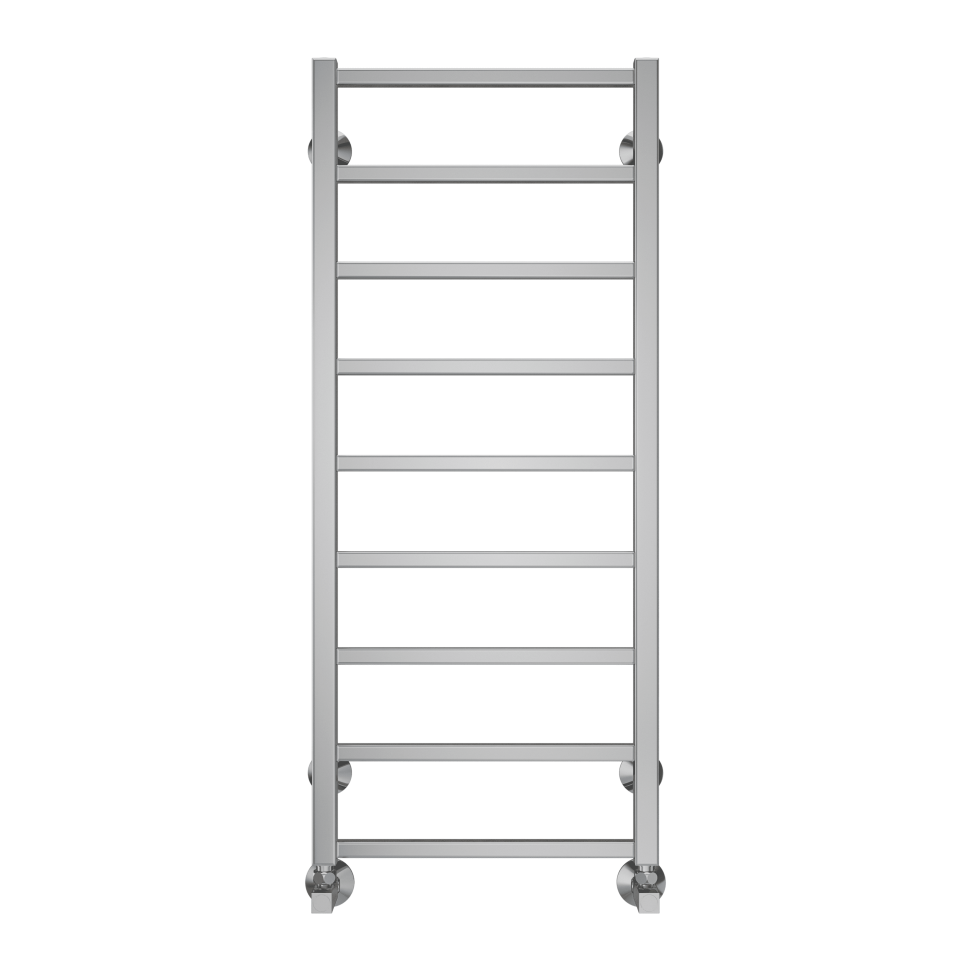 Модель водяного полотенцесушителя Terminus Контур относится к линейке в стиле хай-тек, тяготеющей к лаконичным формам и хромированным поверхностям, и отличается наличием дополнительной прогреваемой полки для хранения и сушки полотенец.