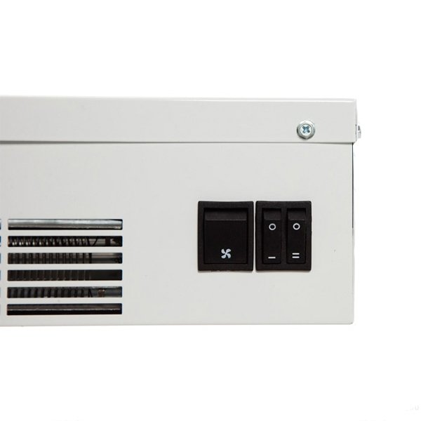 - Предусмотрено два режима нагрева (частичная - 1.5 кВт и полная мощность - 3 кВт) и режим вентиляции без нагрева.