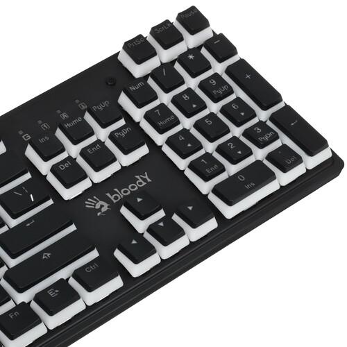 Клавиатура A4Tech Bloody S510NP разработана с учетом потребностей геймеров. Она обладает прочной конструкцией пластикового корпуса и полноразмерной раскладкой с цифровым блоком. Линейные механические переключатели Bloody BLMS RED обеспечивают высокую точность срабатывания каждого нажатия с характерным откликом и отличаются длительным ресурсом службы. Одной из особенностей A4Tech Bloody S510NP является многоцветная светодиодная подсветка, которая формирует эффектный стиль и гарантирует комфорт игры в темное время суток. Клавиатура предусматривает проводное подключение посредством разъема USB и имеет кабель длиной 1.8 м.