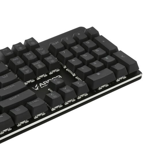 Клавиатура проводная ARDOR GAMING Blade обладает 104 кнопками. Среди них присутствуют те, которые подстраиваются под необходимые команды или опции. Упростить ввод и обработку числовых данных поможет цифровой блок. Синхронизация сопровождается использованием 1.6-метрового USB-кабеля.