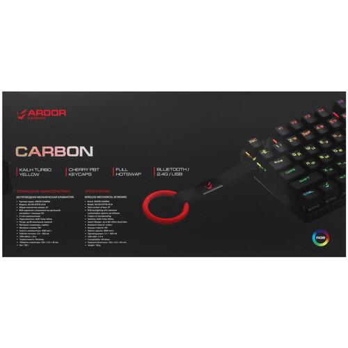 Клавиатура проводная + беспроводная ARDOR GAMING Carbon [AG-DD-87KTB-HS-B] сделана из карбона. Корпус устойчив к износу, ударам. Система шумоизоляции снижает шум от нажатия клавиш и обеспечивает тихую работу в офисе или дома. Клавиатура может подключаться к компьютеру, ноутбуку, моноблоку через беспроводной радиоканал 2.4 Ггц или по кабелю USB Type-A. С помощью Bluetooth осуществляется синхронизация со смартфоном, планшетом. Одновременно к модели можно подключить до 3 устройств. Клавиатура питается от USB при беспроводном соединении и от аккумулятора при проводном.