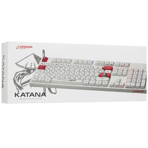 Клавиатура ARDOR GAMING Katana [AG-ZD-104GT-XDA-HS-W] выполнена в белом корпусе с красными клавишами и рисунками в самурайском стиле. Она разработана для точного и комфортного управления в играх. Механические переключатели Gateron Mint с укороченным ходом 2 мм и ресурсом 80 млн нажатий обеспечивают быструю реакцию. Благодаря смазанным стабилизаторам каждое нажатие выполняется легко и плавно.
