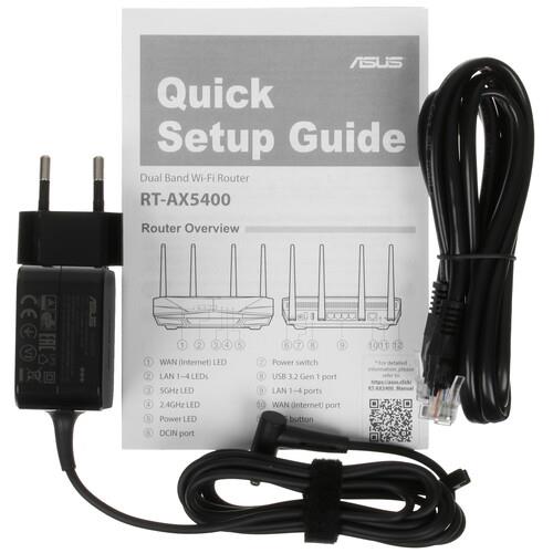 Wi-Fi роутер ASUS RT-AX5400 использует оба диапазона Wi-Fi. Скорость на частоте 5 ГГц ограничена 4804 Мбит/с. Соответствующий показатель для диапазона 2.4 ГГц равен 574 Мбит/с. Проводное подключение организуется посредством четырех гигабитных портов.