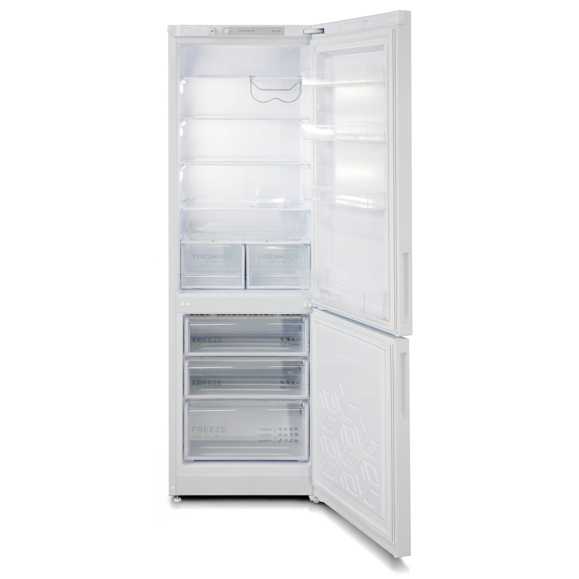 Комплектация Подставка для яиц, масленка, выдвижной лоток, складные полки, полка для бутылок