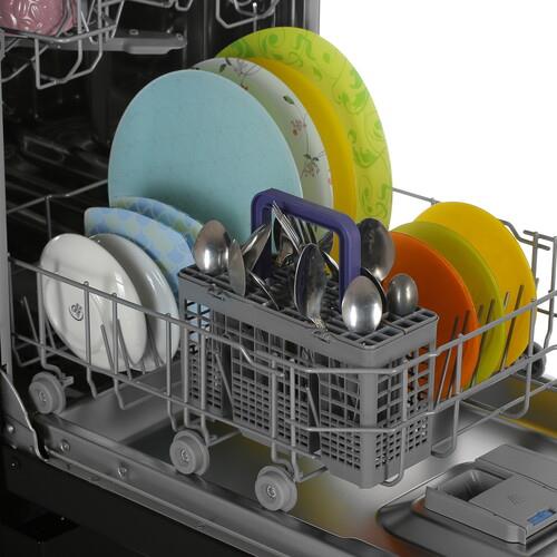За 1 раз посудомоечная машина Beko BDFS15020B нейтрализует загрязнения не только с тарелок и громоздкой кухонной утвари, но также ложек, чашек и вилок – специально для этого ее конструкцией предусмотрен отдельный лоток и вместительные полки. Ваши домочадцы не любят посторонние звуки в процессе работы тех или иных приборов? Просто воспользуйтесь режимом отложенного старта, который автоматически запустит ассистентку во время их отсутствия. Никаких дополнительных расходов на обслуживание устройства – достаточно приобрести капсулы «3-в-1», содержащие необходимую соль и ополаскиватель.
