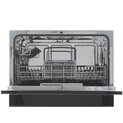 Несмотря на свои небольшие размеры, Electrolux ESF2400OK вмещает до 6 комплектов посуды. Этого вполне достаточно для небольшой семьи или для одного-двух человек. Отдельный лоток для столовых приборов и полочки для чашек обеспечивают оптимальное размещение посуды и качественную мойку.