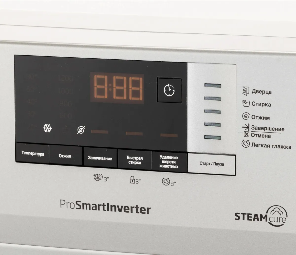 - Технология SteamCure: Паровая обработка для гигиенической стирки, удаления аллергенов и уменьшения складок