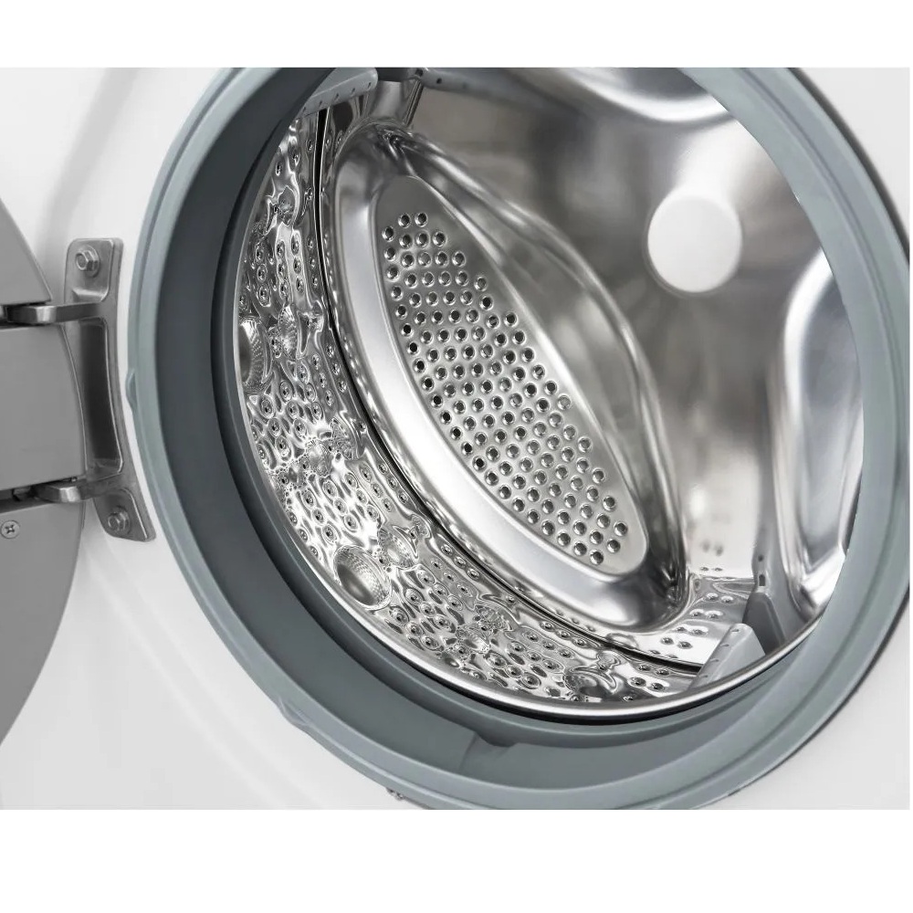 Главным преимуществом этой модели является инверторный двигатель Direct Drive, который крепится непосредственно к барабану без ремней и шкивов. Это решение обеспечивает более тихую работу, уменьшает вибрации и повышает долговечность механизма. Благодаря прямому приводу стирка становится на 30% тише по сравнению с обычными моделями.
