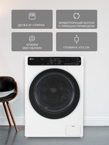Стиральная машина LG F2T9GW9W с фронтальной загрузкой на 8.5 кг оснащена инверторным двигателем, который уменьшает расходы на электричество и обеспечивает малошумную работу. Выбрать подходящие параметры поможет сенсорная панель и приложение LG ThinQ. Технология TurboWash 360 позволяет стирать вещи за 39 минут. Система автовзвешивания определяет заполненность барабана и объем необходимой воды.