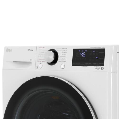 Стиральная машина LG F4V9VS9W белого цвета рассчитана на загрузку до 9 кг белья. Модель поддерживает 12 программ стирки – TurboWash 59, быстро 14 мин, гипоаллергенная, деликатная, моя программа, повседневная, пуховые вещи, смешанная стирка, спортивная, хлопок, хлопок + и шерсть. Функциональные особенности устройства – дозагрузка белья и обработка паром. Максимальная частота вращения барабана при отжиме – 1400 об/мин.