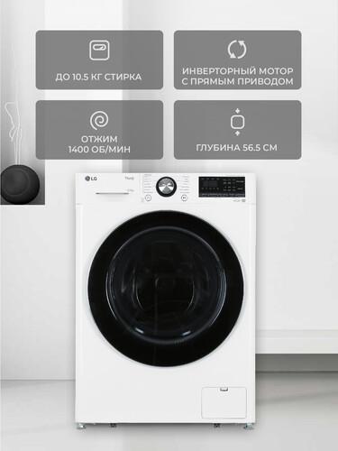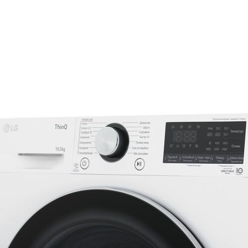Стиральная машина LG TW4V9RW9W с фронтальной загрузкой на 10.5 кг поддерживает 6 режимов вращения барабана и функцию пара Steam+. Они способствуют бережному удалению пятен и препятствуют появлению потертостей на любимых вещах. Интеллектуальная опция AI DD анализирует тип ткани и подбирает необходимые параметры. Управление осуществляется через приложение LG ThinQ и панель управления. Одноименная функция позволяет добавить забытую одежду, не запуская дополнительный цикл. А технология TurboWash 360 – завершить цикл за 39 минут без потери качества стирки.