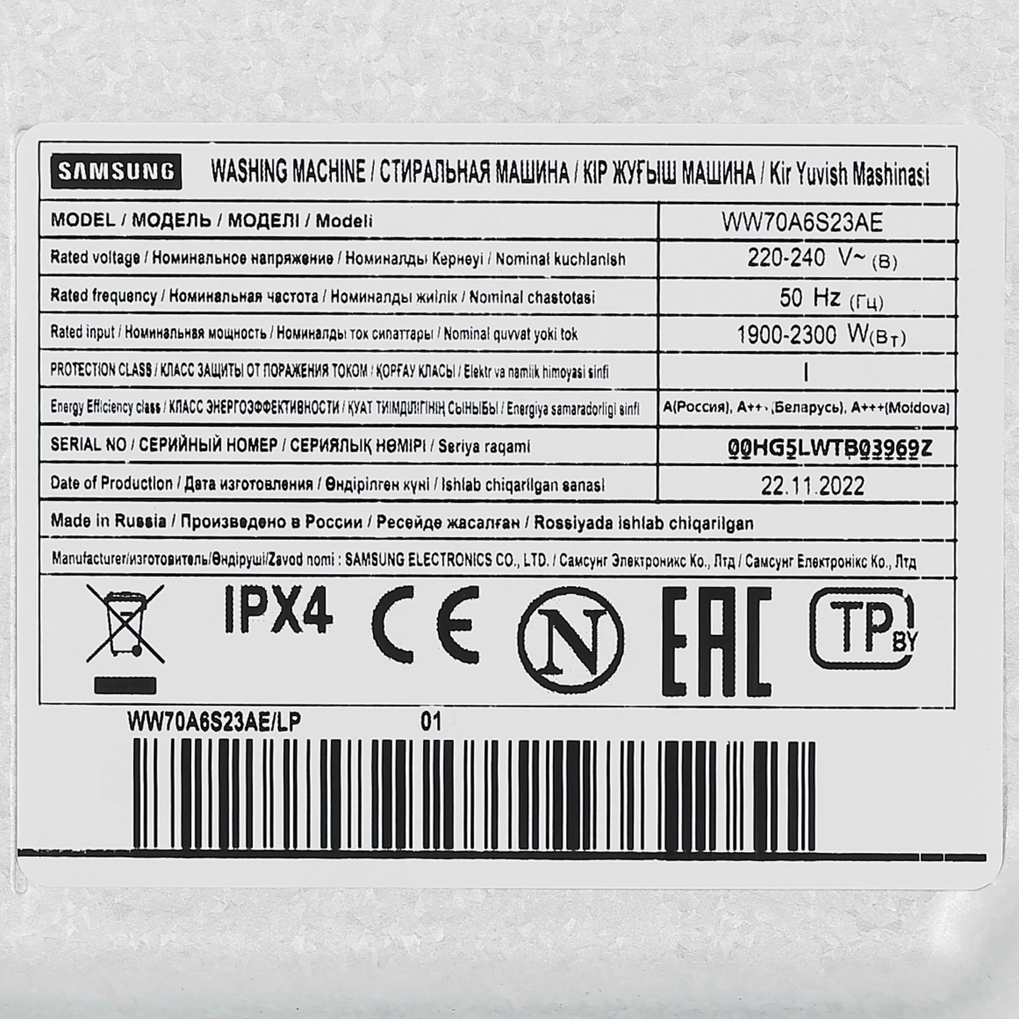 Краткий обзор преимуществ стиральной машины Samsung WW70A6S23AE/LP