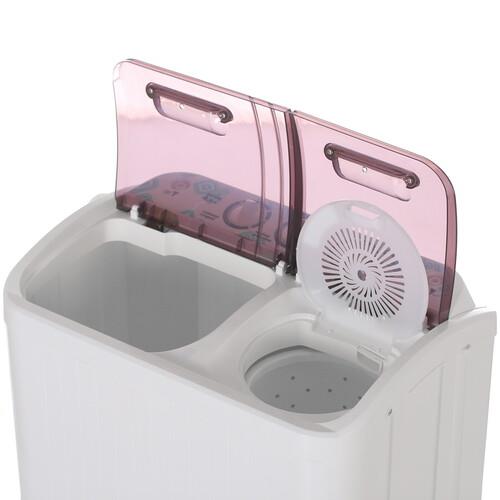 Эта полуавтоматическая стиральная машина оснащена двумя отсеками: для стирки и для отжима. Активаторный тип стирки обеспечивает качественное и бережное очищение вещей.