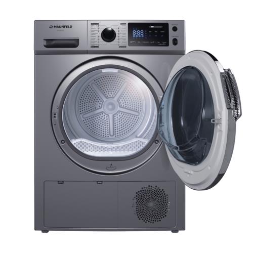 Сушильная машина MAUNFELD MFDM169S серого цвета рассчитана на загрузку до 9 кг белья. Модель поддерживает 16 программ – в шкаф (микс), деликатная, джинсы, мой режим, освежение паром, под утюг, постельное белье, рубашки, смешанные ткани, спортивная одежда, теплый воздух, холодный воздух, шерсть, экстра синтетика, экстра сушка и экстра хлопок. Отсрочка старта машины устанавливается на время до 24 ч.