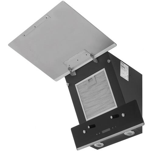 Вытяжка наклонная Haier HVX-W672GBX обладает стильным черным корпусом. Ребра прибора изготовлены из металла. Модель оснащена мотором мощностью 110 Вт, а производительность устройства достигает 700 м³/ч в режимах циркуляции и отведения воздуха. Регулировать скорость вращения вентилятора вытяжки можно в 3 положениях за счет сенсорной панели и дисплея. Благодаря жировому фильтру испарения и загрязнения не попадают внутрь зонта.
