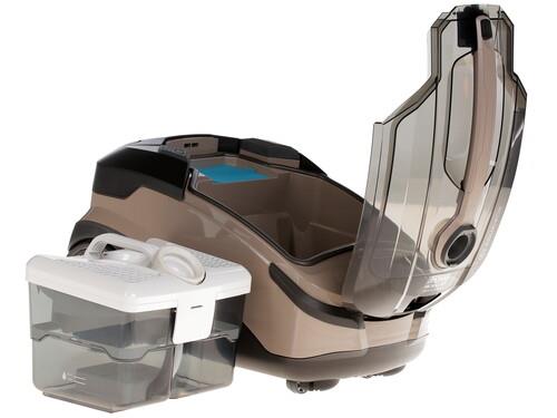 Также устройство оснащается съемным резервуаром для моющей жидкости объемом 1.8 л. Он располагается снаружи пылесоса и легко снимается. Максимальная мощность работы устройства достигает 1600 Вт, однако наличие на корпусе регулятора силы всасывания позволяет снижать как мощность, так и уровень энергопотребления. Помимо этого, в комплекте Thomas MOKKO XT Вы сможете найти насадки как для сухой, так и для влажной уборки, а также специальный моющий концентрат Thomas ProTex.
