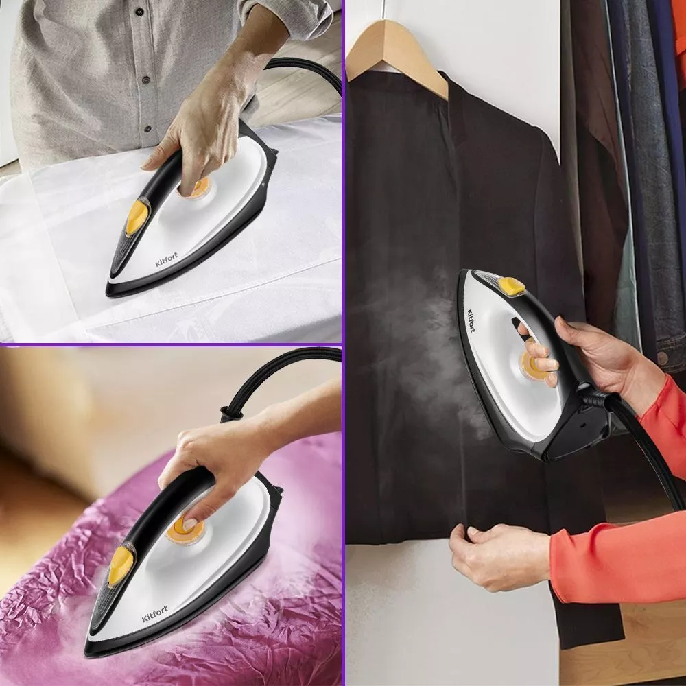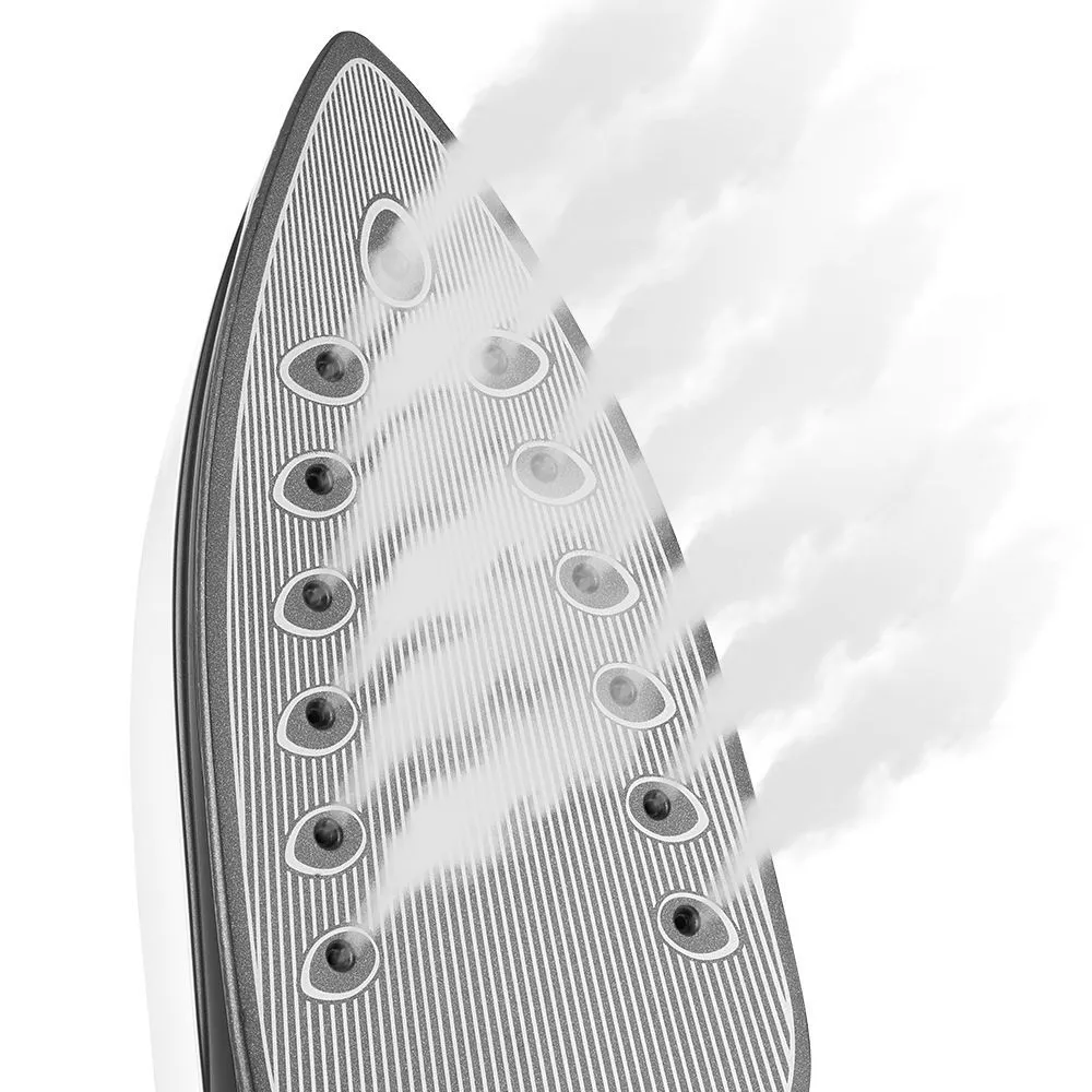 Подошва утюга выполнена из алюминия с керамическим покрытием, поэтому она хорошо скользит и легко очищается. Такой утюг не сделает затяжек на одежде и лишних складок.