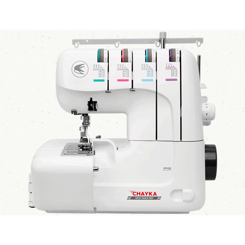 CHAYKA NEW WAVE 007 – новая современная модель оверлока, выполняет 2/3/4-ниточные швы. Дифференциал подачи ткани и регулировка давления лапки на ткань позволяют работать с любыми типами тканей, в том числе с трикотажем, бифлексом и спандексом. На панель нанесена цветная схема, с помощью которой вы сможете без труда заправить оверлок. Также у CHAYKA NEW WAVE 007 есть возможность регулировать ширину обрезки ткани и отключать нож. В комплектацию к этой модели входит мусоросборник.