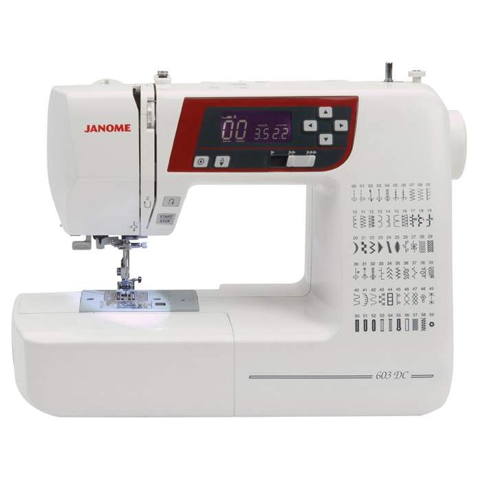 Электронные функции возможность шитья без педали, LCD (ЖК дисплей), остановка иглы в верхнем положении, вертикальный позиционер иглы, электронный горизонтальный позиционер, электронный швейный советник