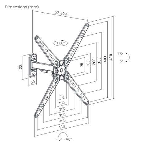 Настенный поворотно-наклонный кронштейн для телевизоров и мониторов с диагональю от 13 до 55 дюймов.