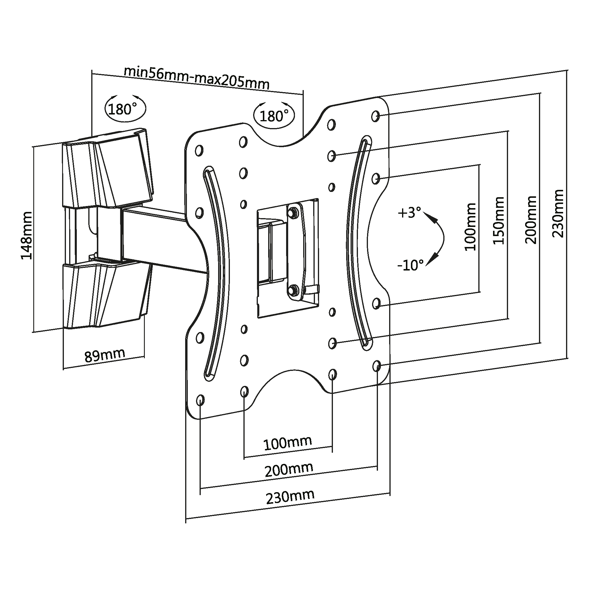 Угол наклона: +3°~-10°