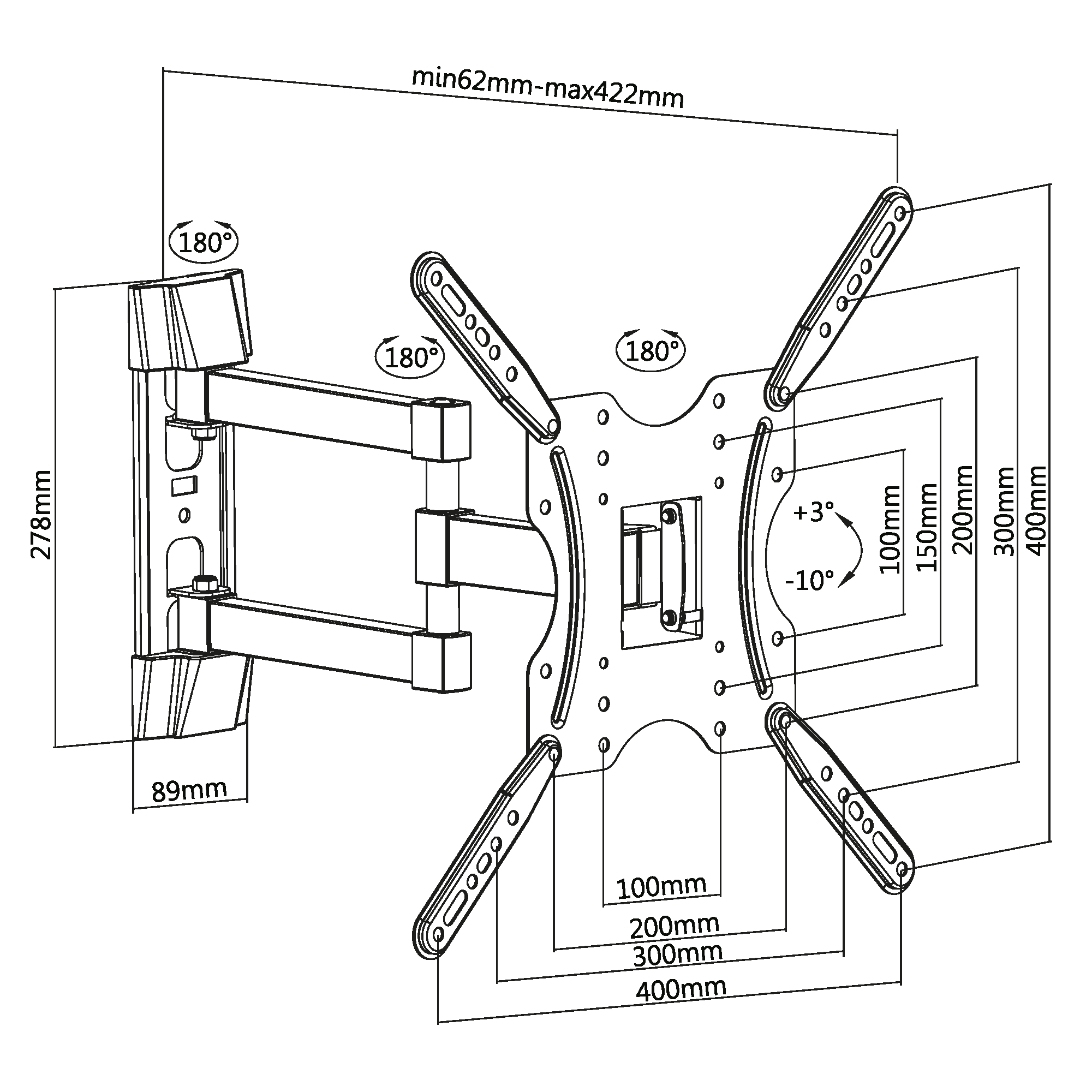 Расстояние от стены: 62~422 мм