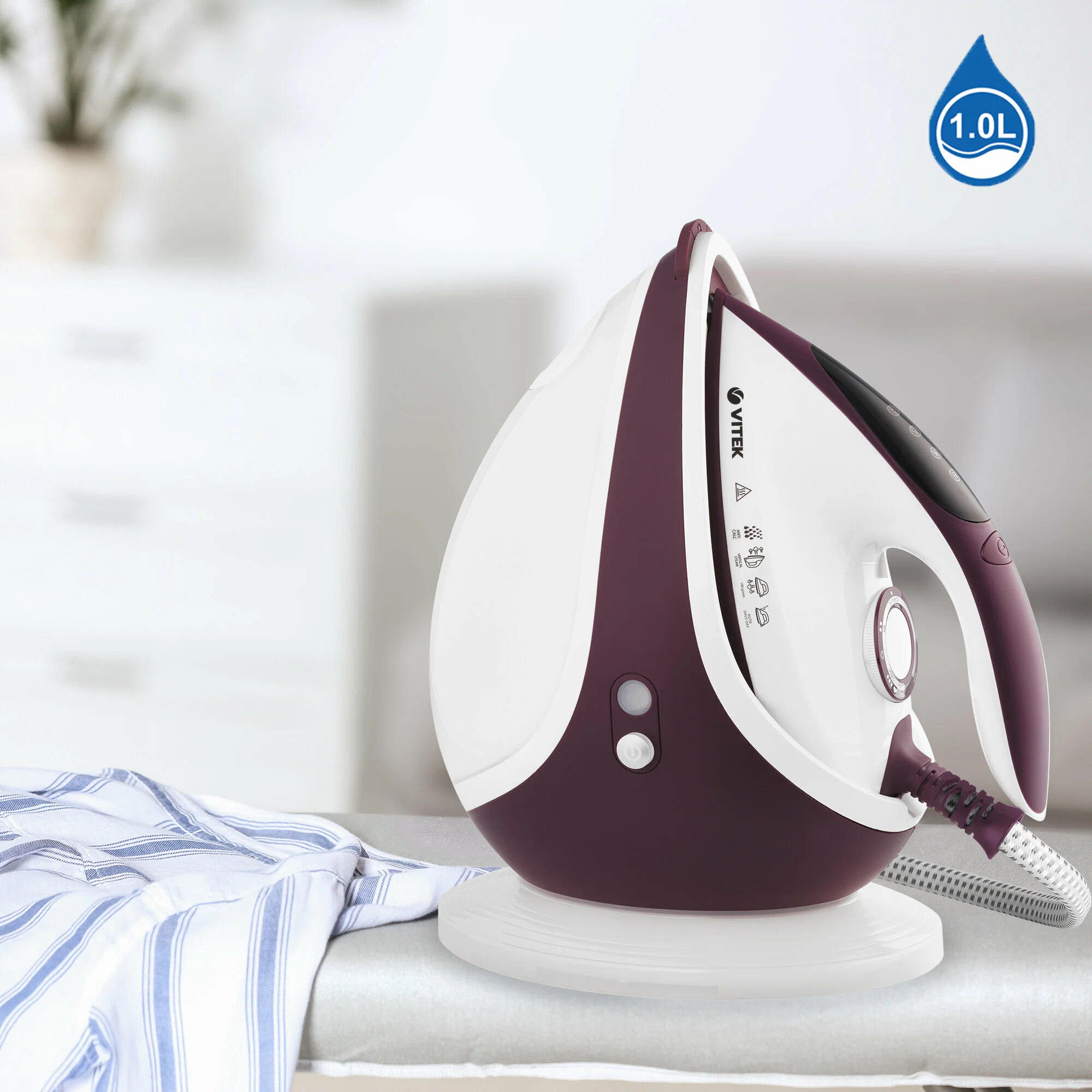 паровой удар, постоянная подача пара, регулировка температуры, сигнал автоотключения, система самоочистки, сухая глажка