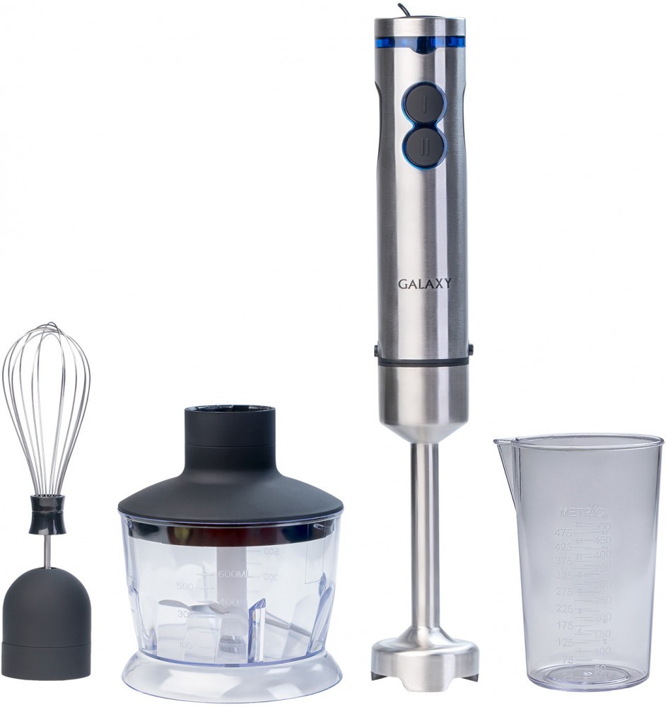 погружной блендер, мощность 800 Вт, механическое управление, мерный стакан, мини измельчитель, венчик для взбивания, корпус из металла