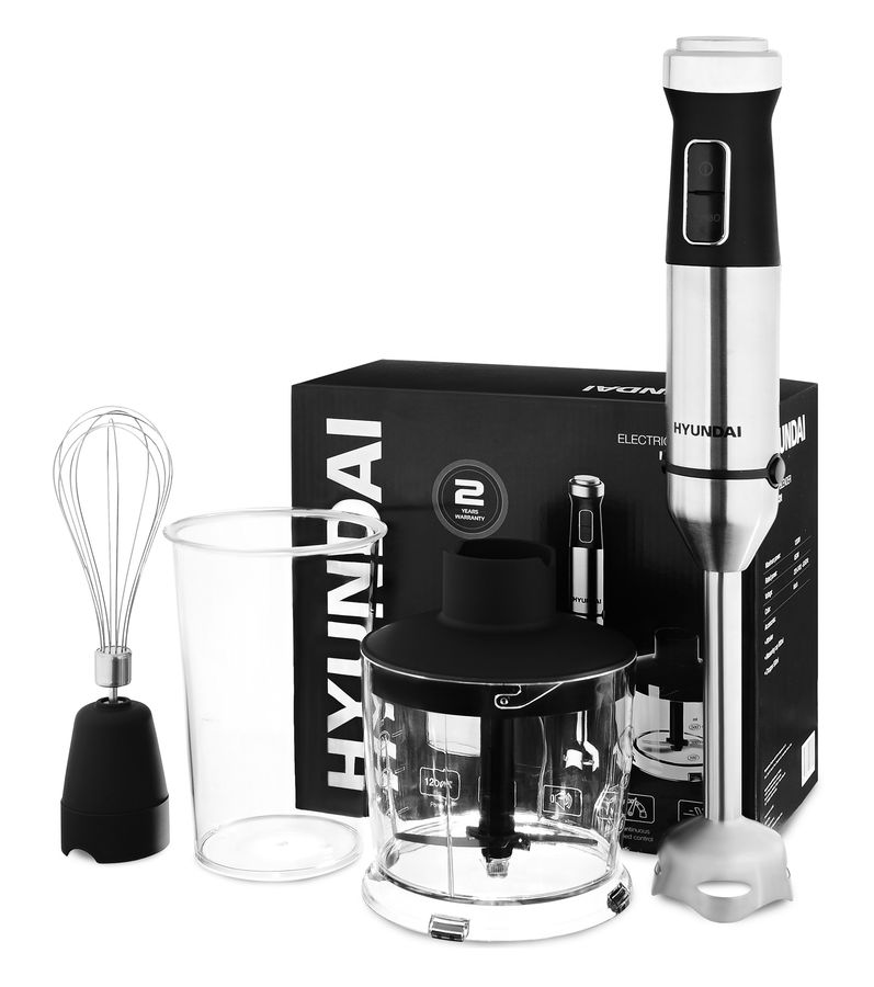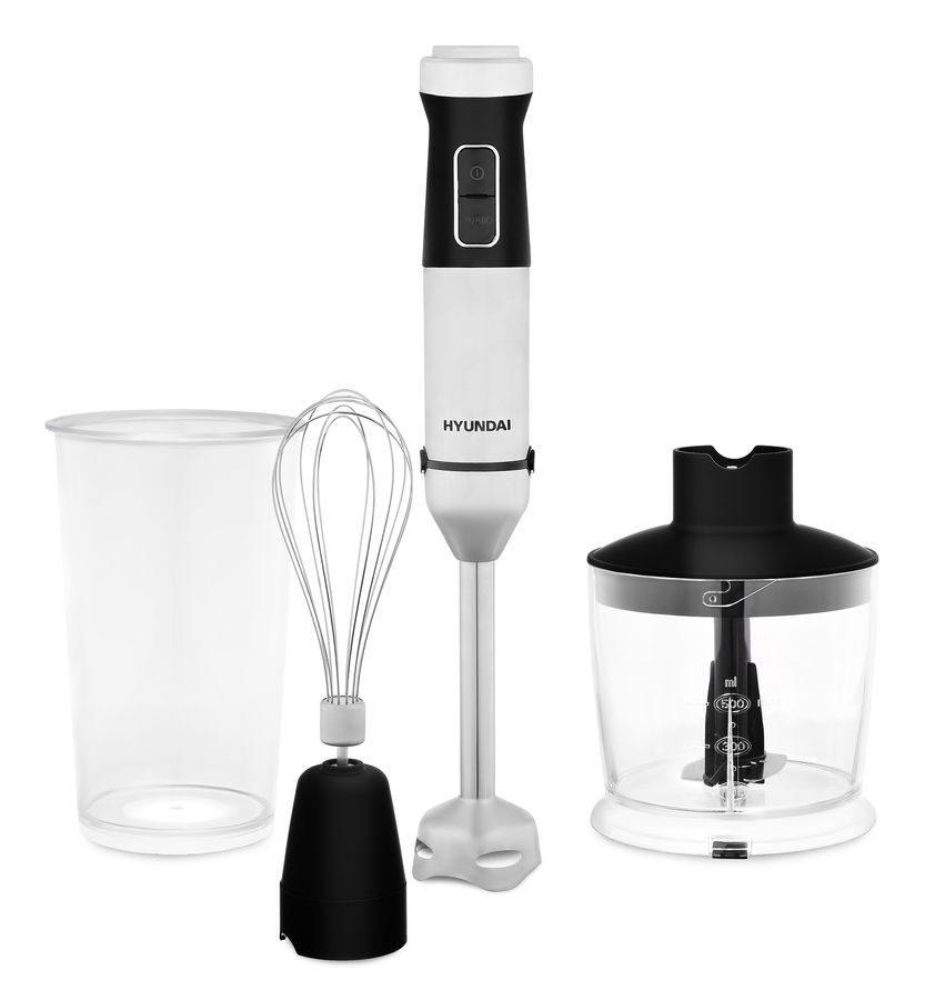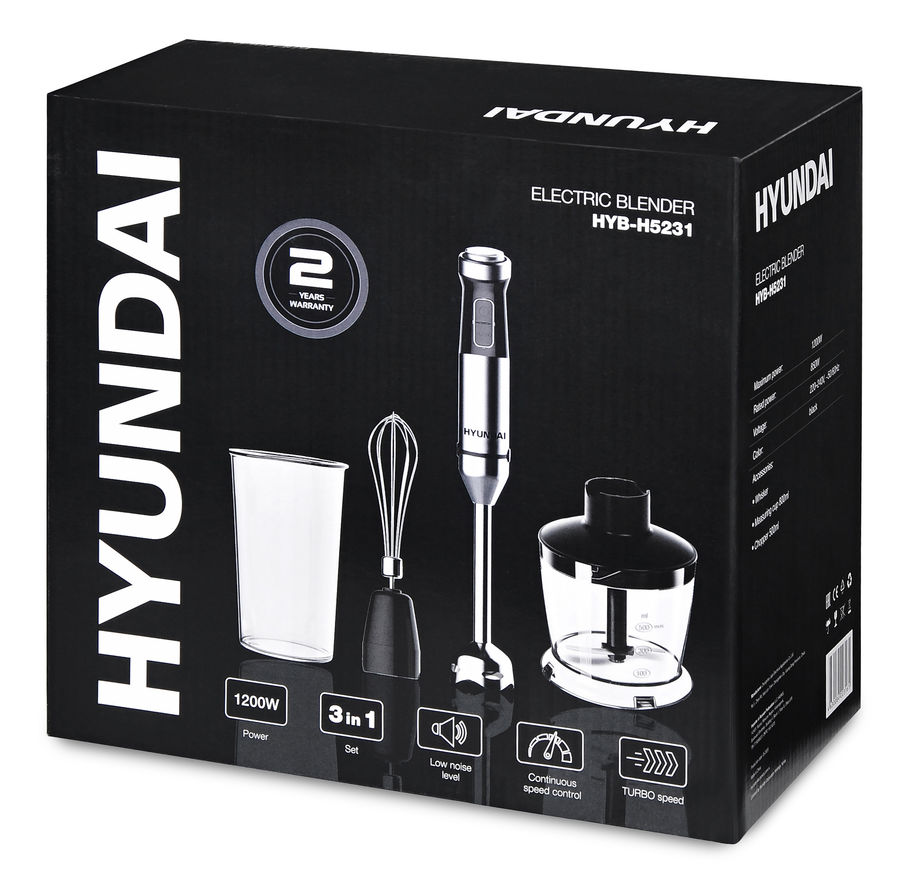 Если домохозяйка купит блендер HYUNDAI HYB-H5231 черного цвета, то она сможет быстро приготавливать ребенку детское питание, вкусное картофельное пюре с подливой. Погружная часть и ножи изготовлены из нержавеющей стали. Металл абсолютно безопасен для здоровья и повышает длительность эксплуатации блендера. В комплекте вместе с устройством есть мерный стаканчик и необходимые насадки - измельчитель, венчик.