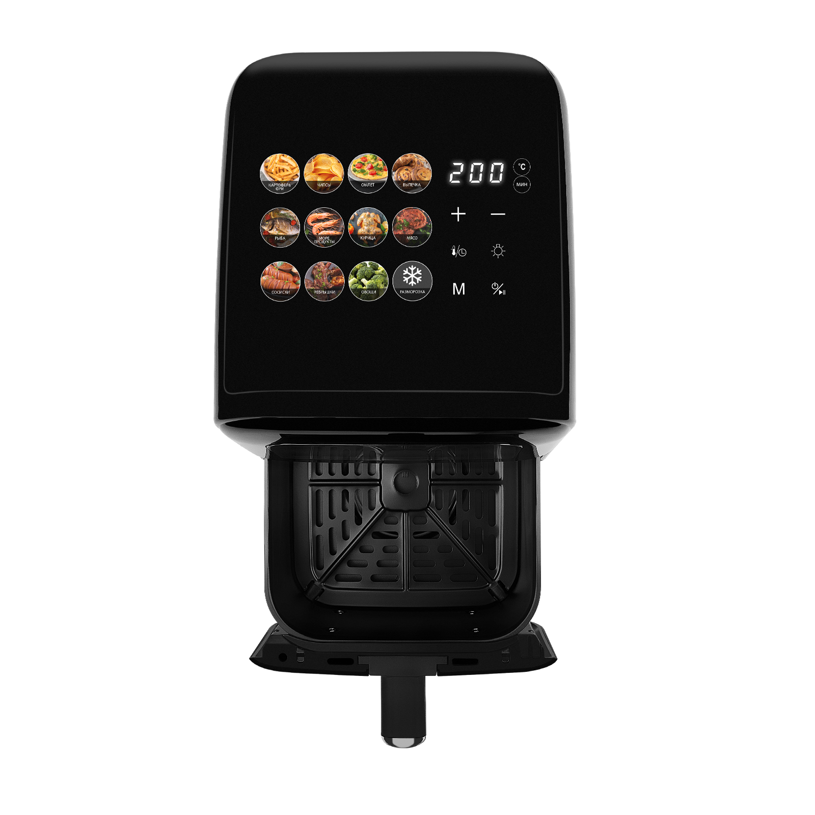 В комплекте: аэрогриль, чаша, решетка, книга рецептов, руководство по эксплуатации