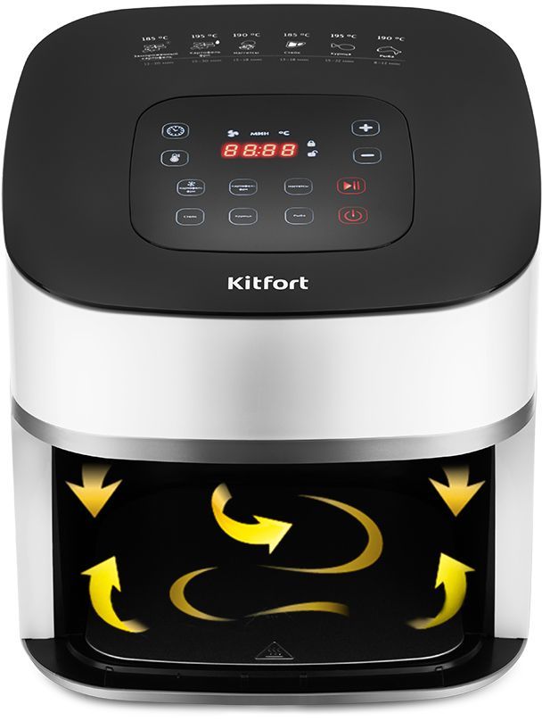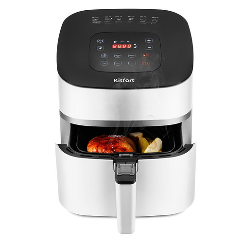 Описание: Аэрогриль, аэрофритюрница и духовка. Позволяет готовить большинство продуктов с минимальным количеством масла или без него. Благодаря системе циркуляции горячего воздуха, продукты обжариваются равномерно со всех сторон, получаясь при этом нежными внутри и с хрустящей корочкой снаружи. Аэрогриль оснащён электронным управлением, он имеет 6 автоматических программ. На дисплее отображаются температура и время приготовления. Съёмный поддон и корзина имеют антипригарное покрытие, благодаря чему они легко чистятся после использования, а блюда можно готовить практически без добавления масла.
