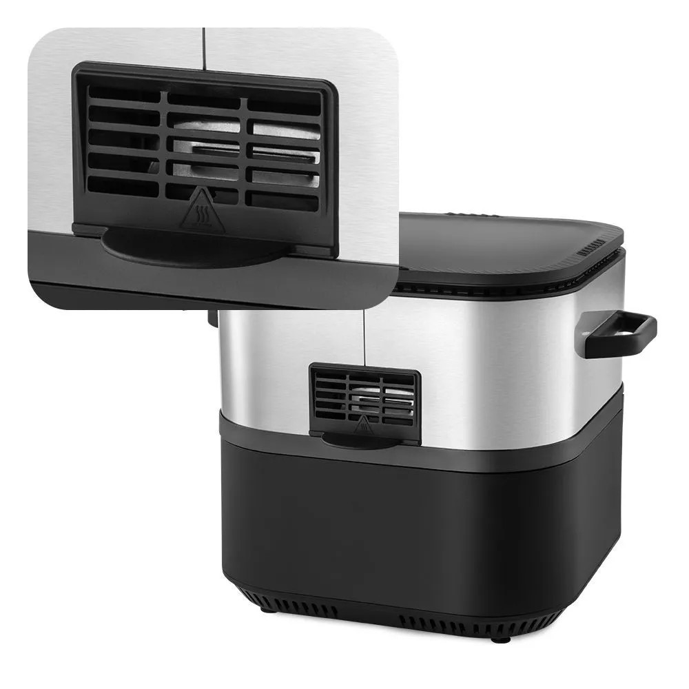 совмещает в себе функции двух устройств: аэрогриля и контактного гриля