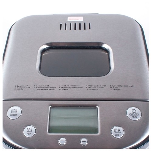 - выбор цвета корочки, таймер, регулировка веса выпечки, замес теста