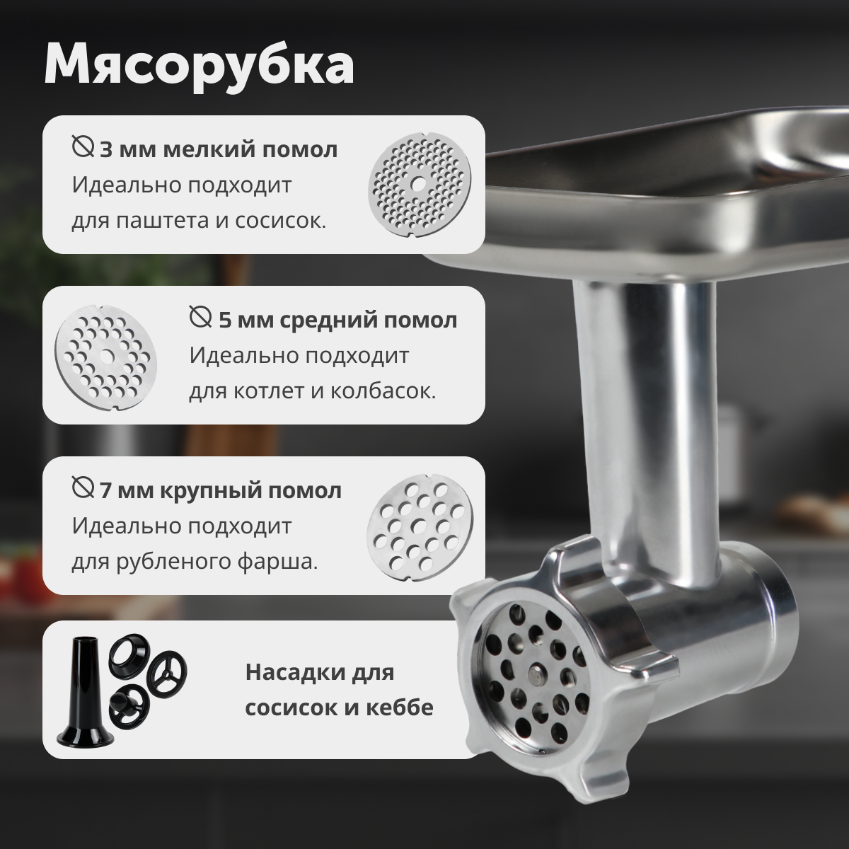 Типкухонная машинаПотребляемая мощность, в Вт1500Тип управленияповоротныйОбъем чаши, в литрах4.5Материал чашинержавеющая стальБлендерДаМатериал кувшина блендерастеклоОбъем блендера, в литрах4.5МясорубкаДаКоличество насадок3Насадкивенчик для взбивания; крюк для теста; насадка для перемешиванияИндикацияотсутствуетПлавный запуск двигателяНетЗащитаот перегреваСтрана-производительКитайУправлениеПланетарное вращениеДаКоличество скоростей6Плавная регулировка скоростиДаИмпульсный режим работыДаКорпусЦветсеребристыйМатериалпластикДлина сетевого шнура, в метрах1Прорезиненные ножкиДаКомплектацияКомплект поставкиКомбайн кухонный, насадки (крюк для теста, плоский битер, венчик для взбивания), чаша металлическая, чаша блендера, мясорубка с 3 решетками и 1 ножом, металлический лоток для мясорубки, инструкция по использованию кухонного комбайна с мясорубкой, плотная упаковка для комбайна.Размеры и весВес, в кг7.55Высота, в см31.8Ширина, в см23.4Глубина, в см38.2